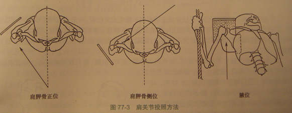 正位、侧位片及穿胸位片可确定肩关节脱位的类型、移位方向及有无撕脱骨折。